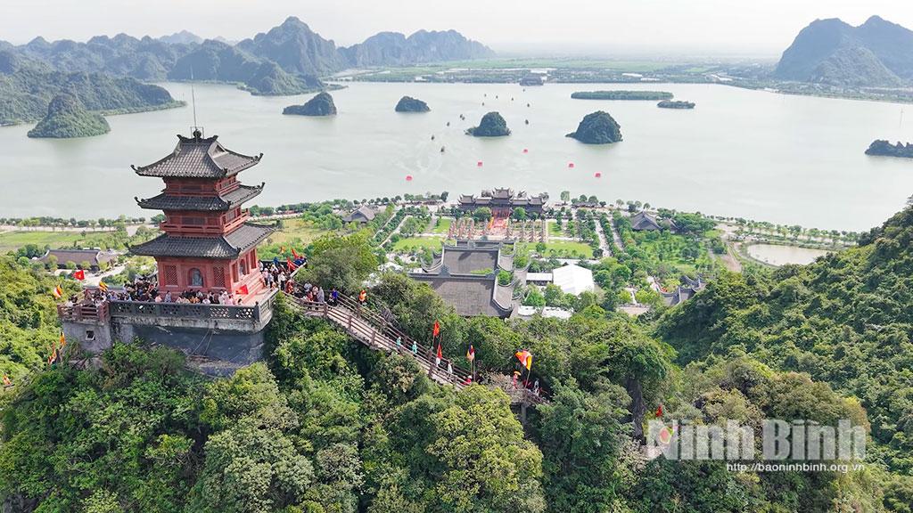 Đối với dịch vụ du lịch, tỉnh xác định phát triển du lịch chất lượng cao, mang đậm bản sắc riêng có của Ninh Bình, gắn chặt với công nghiệp văn hóa và công nghiệp giải trí. Tỉnh tập trung cơ cấu lại sản phẩm du lịch theo hướng 4 mùa, khắc phục tính thời vụ của du lịch truyền thống; xây dựng, phát triển sản phẩm, dịch vụ chất lượng cao, gia tăng chi tiêu và thời gian lưu trú, đáp ứng nhu cầu tham quan, trải nghiệm văn hóa, di sản, nghỉ dưỡng, thể thao, giải trí, chăm sóc sức khỏe, mua sắm... Khai thác có hiệu quả lợi thế về di sản, di tích văn hóa, lịch sử và danh thắng nổi tiếng như Tràng An, Tam Cốc - Bích Động, Cúc Phương, Kênh Gà, chùa Bái Đính, chùa Tam Chúc, Phủ Dầy, hệ thống di tích Đền Trần, hệ thống nhà thờ Công giáo (Bùi Chu, Phát Diệm, Kiện Khê)…; tạo đột phá về phát triển sản phẩm du lịch đường thủy (tuyến dọc sông Đáy, sông Hoàng Long, sông Hồng…), phát triển du lịch biển gắn với du lịch cộng đồng, du lịch sinh thái, du lịch văn hóa, du lịch trải nghiệm, du lịch làng nghề. |