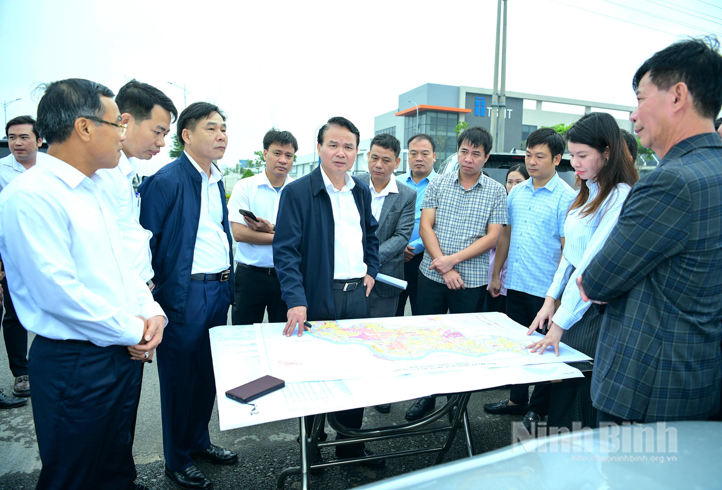 Đồng chí Đặng Xuân Phong, Ủy viên Trung ương Đảng, Bí thư Tỉnh ủy, Trưởng đoàn ĐBQH tỉnh và đoàn công tác của tỉnh khảo sát tại Khu công nghiệp Thái Hà, xã Bắc Lý. Ảnh: Trường Giang
